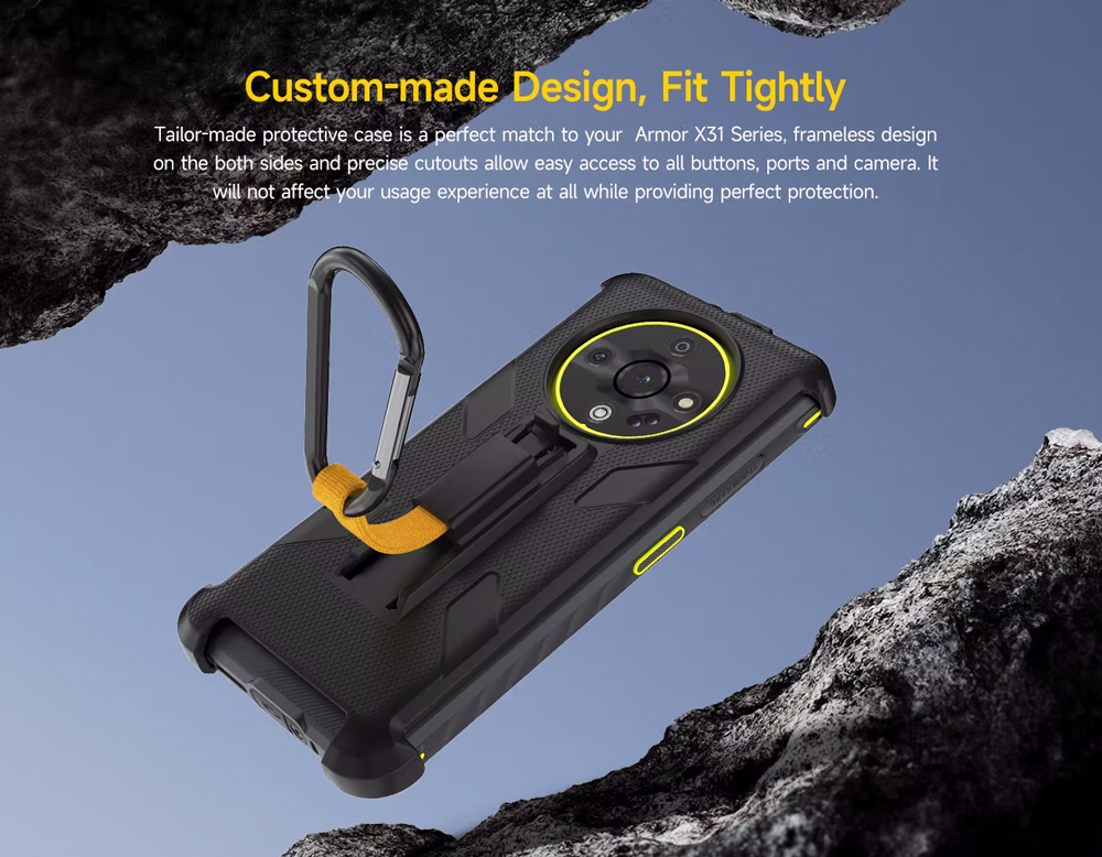 Αυτή η θήκη της ULEFONE είναι ειδικά σχεδιασμένη για τα smartphone της σειράς Armor X31. Είναι κατασκευασμένη από αντιολισθητικό και ανθεκτικό υλικό στις πτώσεις. Μαζί με την θήκη συμπεριλαμβάνονται, ένα περιστρεφόμενο κλιπ 180° που μπορεί να τοποθετηθεί σε ζώνη και ένα κλιπ με γάντζο που μπορεί να κρεμαστεί από ζώνη ή σακίδιο.
