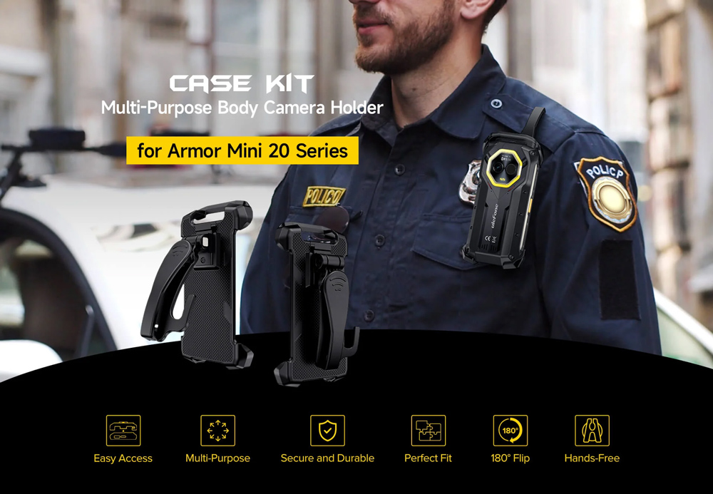 Αυτή η θήκη της ULEFONE είναι ειδικά σχεδιασμένη για τα smartphone της σειράς Armor Mini 20. Με αυτή τη θήκη μπορείτε να κρεμάστε το smartphone σας από το ρούχο, την ζώνη ή το σακίδιο σας, και να χρησιμοποιήσετε το smartphone σας ως κάμερα σώματος, έχοντας την κάμερα ενεργοποιημένη, χωρίς να χρειάζεται να κρατάτε το smartphone στα χέρια σας.