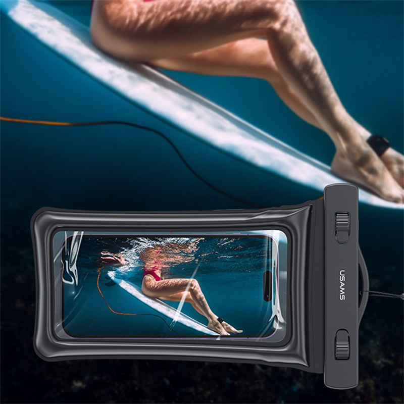 Αδιάβροχη θήκη της Usams, συμβατή με smartphones έως 7″. Ασφαλίζει πλήρως τη συσκευή σας από την εισροή νερού, χάρη στην εξαιρετική στεγανότητα επιπέδου IPX8.