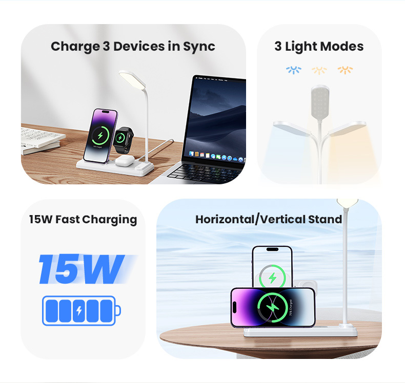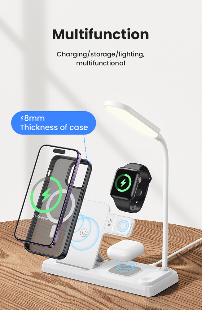 USAMS ασύρματος φορτιστής US-CD195 με φωτιστικό, 4 σε 1, 15W, λευκός