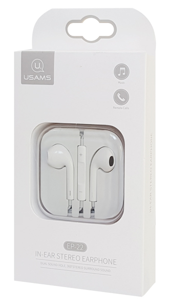 USAMS earphones με μικρόφωνο EP-22, 3.5mm σύνδεση, Φ14mm, 1.2m, λευκά
