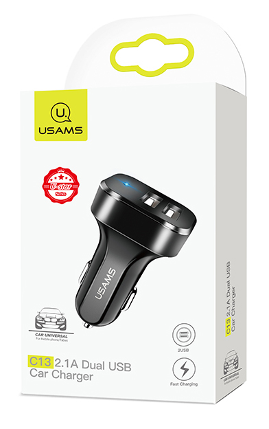 Υψηλής απόδοσης USB φορτιστής αυτοκινήτου της Usams, κατασκευασμένος από πλαστικό υλικό και συμβατός με όλες τις συσκευές που φορτίζουν μέσω USB θύρας. Με τον φορτιστή C13 θα φορτίσετε τη συσκευή σας γρήγορα, καθώς υποστηρίζει τεχνολογία ταχείας φόρτισης, μέγιστης απόδοσης 2.1A.