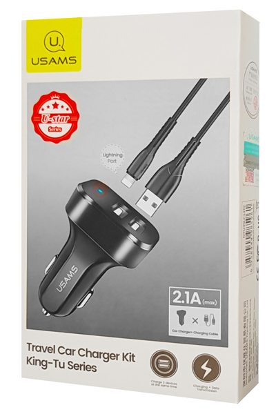 USAMS φορτιστής αυτοκινήτου C13 & καλώδιο Lightning, 2x USB, 2.1A, μαύρο