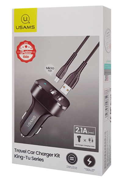 USAMS φορτιστής αυτοκινήτου C13 & καλώδιο Micro USB, 2x USB, 2.1A, μαύρο