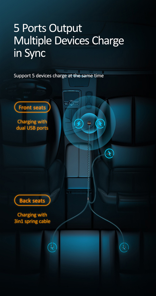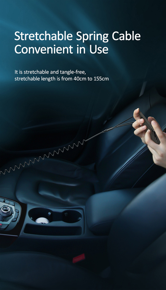 Ο φορτιστής ενσωματώνει 3 σε 1 πτυσσόμενο καλώδιο, με 3 εξόδους: Micro USB, Lightning & Type-C, μήκους 40-155cm.