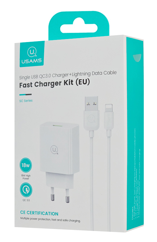 USAMS φορτιστής τοίχου SCXLTZ03 με καλώδιο Lightning, USB, 18W, λευκός