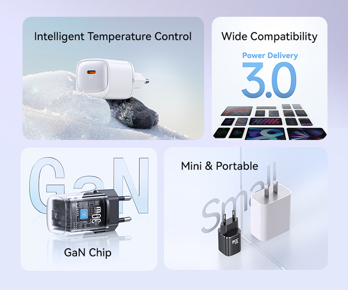 USAMS φορτιστής τοίχου US-CC251, USB-C, 30W, GaN, λευκός