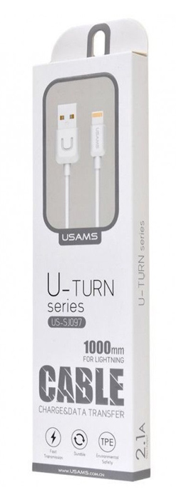USAMS καλώδιο Lightning σε USB US-SJ097, 2.1A, 1m, λευκό