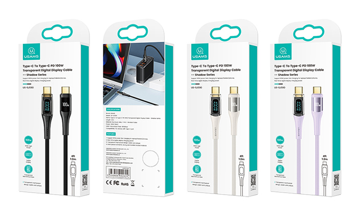 Καλώδιο φόρτισης και μεταφοράς δεδομένων USB-C σε USB-C της Usams. Υποστηρίζει φόρτιση με απόδοση έως 100W και μεταφορά δεδομένων με ταχύτητα έως 480Mbps.
