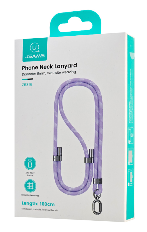 USAMS κορδόνι λαιμού για κινητά ZB316, 160cm, universal, μωβ
