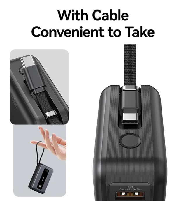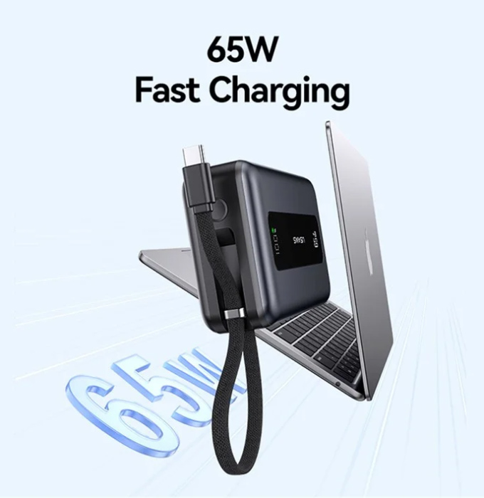 Η φόρτιση του power bank γίνεται μέσω της USB-C θύρας ή ενσωματωμένου καλωδίου και εξοπλίζεται με ψηφιακή οθόνη για την ένδειξη κατάστασης της μπαταρίας.