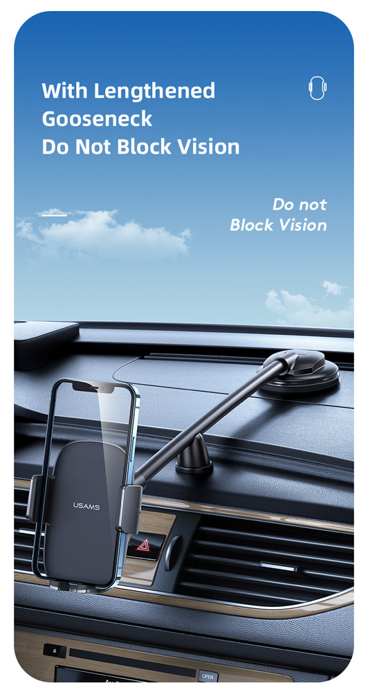 Διαθέτει εύκαμπτο βραχίονα με προσαρμόσιμη γωνία και στερεώνεται εύκολα σε οποιαδήποτε επίπεδη επιφάνεια του αυτοκινήτου.