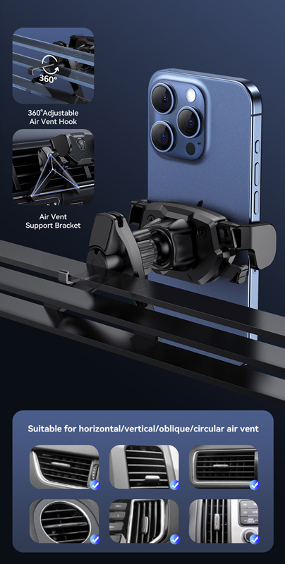 Βάση αυτοκινήτου για smartphone με στήριξη σε οριζόντιους ή κάθετους αεραγωγούς του αυτοκινήτου.