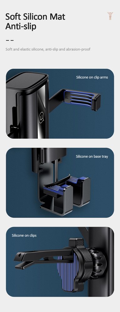 Η βάση για smartphone US-ZJ058 διαθέτει σημείο στήριξης στον αεραγωγό του αυτοκινήτου, προσφέροντας κορυφαία σταθερότητα. Ασφαλίζει το smartphone με έναν έξυπνο μηχανισμό συγκράτησης, ο οποίος λειτουργεί με την τοποθέτηση του κινητού. Τα μετακινούμενα πτερύγια της βάσης είναι επενδυμένα από αντιολισθητικό, μαλακό υλικό, ώστε να βελτιώνεται το επίπεδο συγκράτησης, αποτρέποντας τις γρατσουνιές από την χρήση. Τα πτερύγια ανοίγουν μόλις τοποθετηθεί το τηλέφωνο στην συσκευή και κλείνουν μόλις αυτό αφαιρεθεί. Η βάση είναι μικρή και διακριτική και ο μηχανισμός της επιτρέπει την καλή ροή του αέρα όταν δεν υπάρχει τηλέφωνο στην βάση. Η βάση διαθέτη ειδική υποδοχή που επιτρέπει καλώδιο φόρτισης όσο το κινητό βρίσκεται πάνω στην βάση.