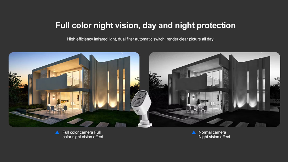 -Night vision: Black and white night vision/full color night vision, 6pcs 850nm infrared lights, 2pcs white light lights