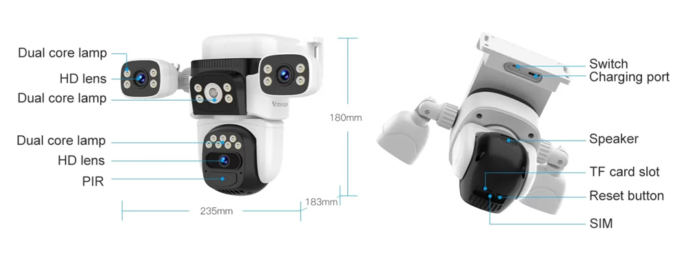 VSTARCAM smart ηλιακή κάμερα BG621SR, triple lens, 2MP, 4G, SD, PTZ, IP66