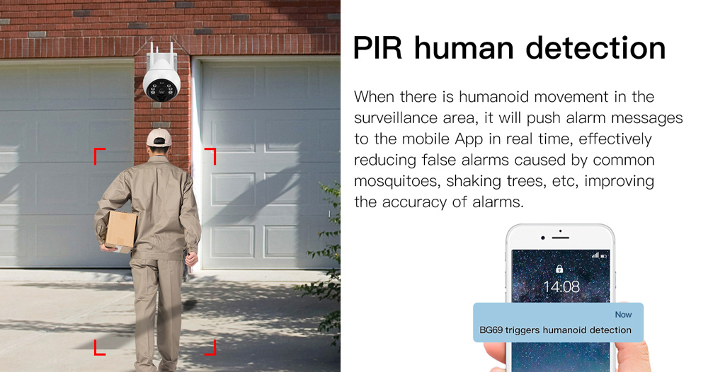 Η κάμερα μπορεί, επίσης, να ενεργοποιήσει ηχητικό και οπτικό συναγερμό κατά τον εντοπισμό παραβίασης. Πολύ σημαντικό πλεονέκτημα για χώρους εργασίας είναι η λειτουργία “απουσίας” που μπορεί να ειδοποιεί όταν κάποιος απομακρυνθεί και επιστρέψει στην θέση εργασίας του. Υποστηρίζει λειτουργία νυχτερινής όρασης, με ασπρόμαυρη ή έγχρωμη εικόνα για την παρακολούθηση ακόμη και στο σκοτάδι. Τα βίντεο που καταγράφονται αποθηκεύονται σε micro SD (δεν συμπεριλαμβάνεται) ή απευθείας σε λογαριασμό στο cloud.