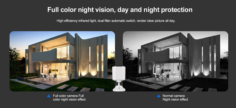 Επιπλέον, υποστηρίζει λειτουργία νυχτερινής όρασης με έγχρωμη εικόνα για την παρακολούθηση ακόμη και στο σκοτάδι και τα βίντεο που καταγράφονται αποθηκεύονται εσωτερικά σε micro SD (δεν συμπεριλαμβάνεται) ή απευθείας σε λογαριασμό στο cloud.