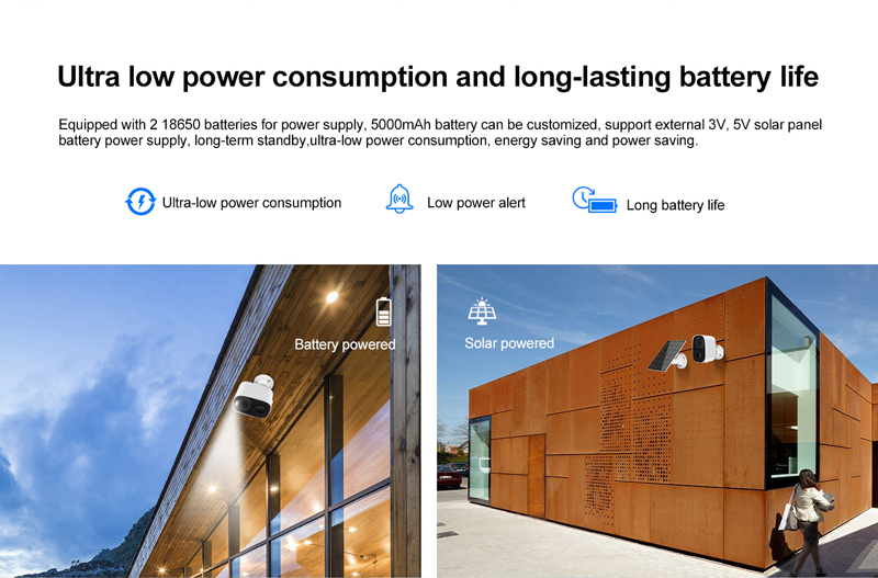Power supply: Comes with 5000mAh battery power supply, 2×18650, supports external 3V, 5V solar panels