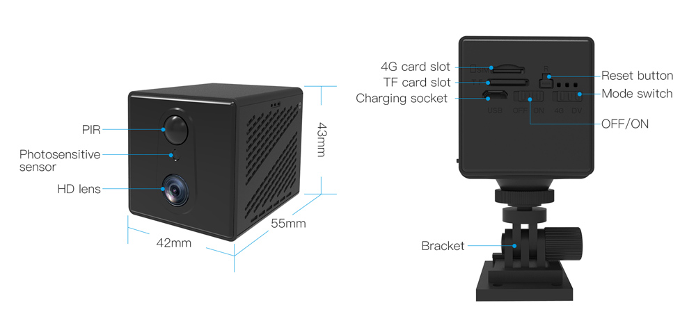 -Lens: 4G lens, IR CUT integrated, standard lens diameter 10mm