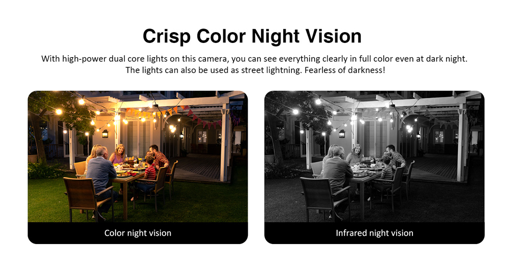 -Night vision: Black and white night vision, full-color night vision
