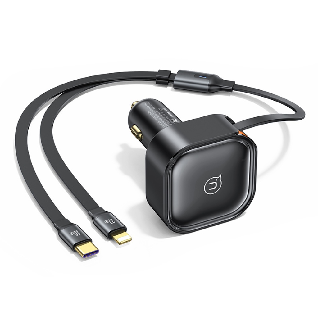 USAMS φορτιστής αυτοκινήτου CC287 με 2 σε 1 καλώδιο, USB/USB-C θύρες, 66W, μαύρος