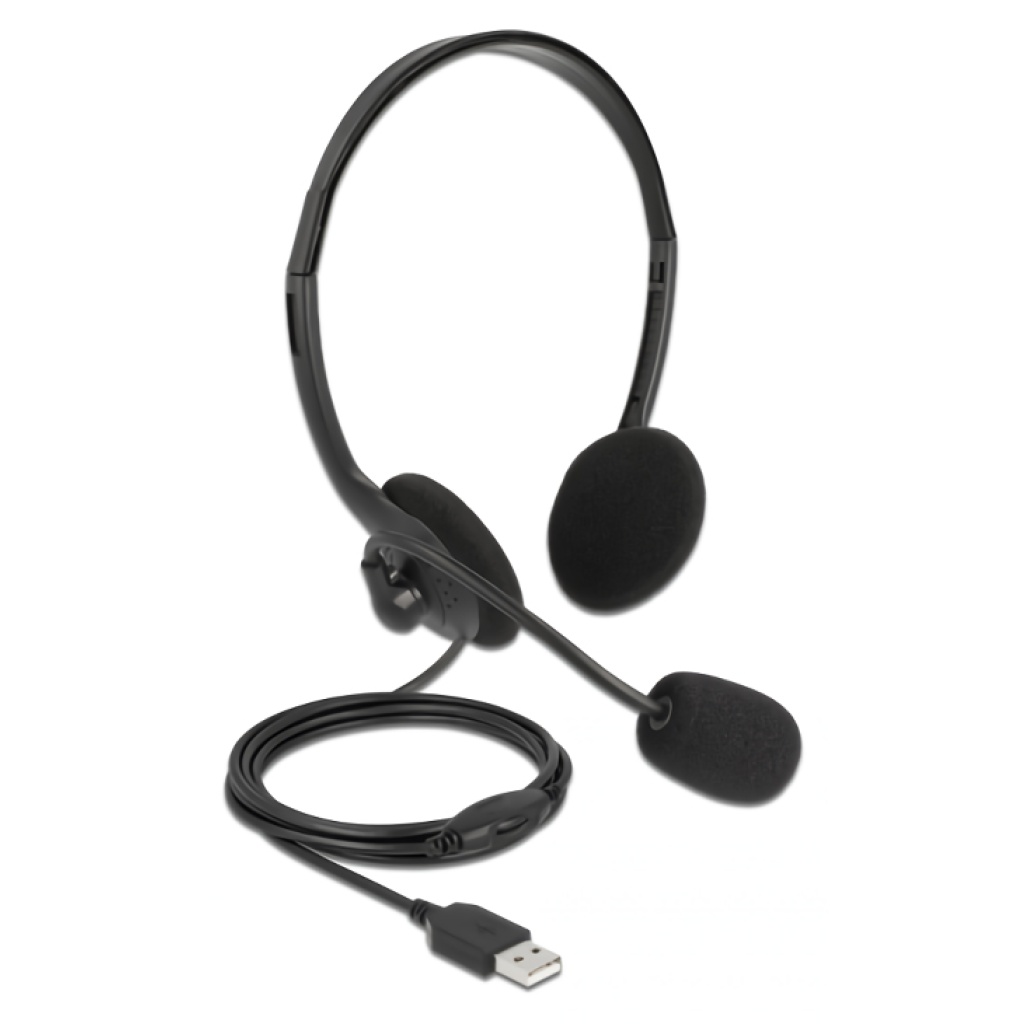 DELOCK headphones με μικρόφωνο 27178, stereo, USB, volume control, μαύρα