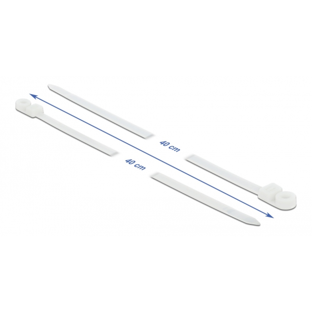 DELOCK Δεματικά καλωδίων 18948 με οπή στερέωσης, 400×7.6mm, λευκά, 10τμχ