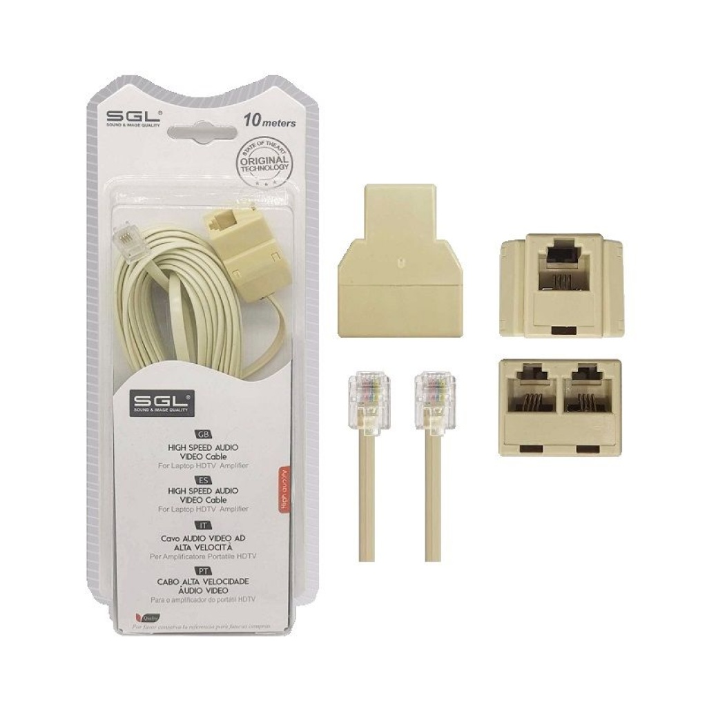 Καλώδιο γραμμής τηλεφώνου με διακλαδωτή – 6P4C1-2 – 10m – 097084