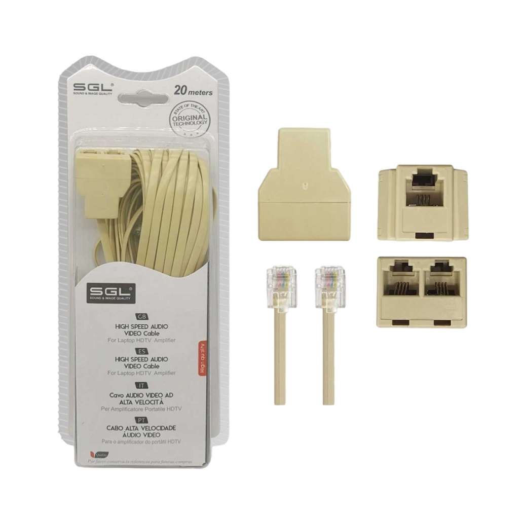 Καλώδιο γραμμής τηλεφώνου με διακλαδωτή – 6P4C1-2 – 20m – 097107